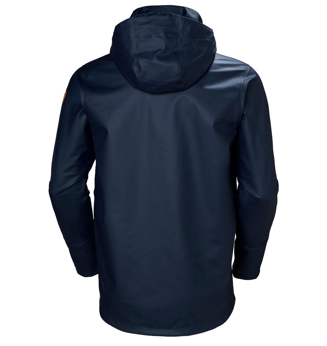 Kurtka przeciwdeszczowa Helly Hansen Gale Jacket ustanowiła nowy standard, jeżeli chodzi o jakość odzieży przeciwdeszczowej, zapewniając wodoodporność i trwałą ochronę przy zachowaniu elastyczności tkaniny dla swobody ruchów. Kurtka posiada chowany kaptur z przedłużanym daszkiem dla lepszej ochrony przed deszczem oraz neoprenowe, wewnętrzne mankiety zapobiegające dostawaniu się wody pod rękawy. Przednie zapinanie kurtki zostało schowane pod podwójną klapą sztormową, która uniemożliwia dostawaniu się wody oraz wiatru. Na wysokości klatki piersiowej znajduje się zapinana kieszeń na telefon z otworem na słuchawki. Tkaniny wolne od ftalanów zapewniają niewielki wpływ na środowisko przy jednoczesnym zachowaniu właściwości hydrofobowych. Najważniejsze funkcje i elementy produktu: Materiał: 100% poliuretan na 100% dzianinie poliestrowej 240 g/m 2 Kaptur regulowany troczkami chowany pod kołnierz Podwójna klapa sztormowa Centralny zamek błyskawiczny YKK Kieszeń na telefon zapinana na zamek błyskawiczny YKK® z dodatkowym otworem na przewód słuchawkowy Dwie dolne kieszenie Neoprenowe, wewnętrzne mankiety Regulacja dolnej części kurtki elastycznymi troczkami Przedłużany tył Kieszeń wewnętrzna Pętla na identyfikator Kurta spełnia normy EN 343:2003 + A1:2007 3,1 Dokładne wymiary +/-1cm S M L XL XXL Szerokość pod pachami Długość rękawa od pachy Długość całkowita z tyłu od wszycia kaptura