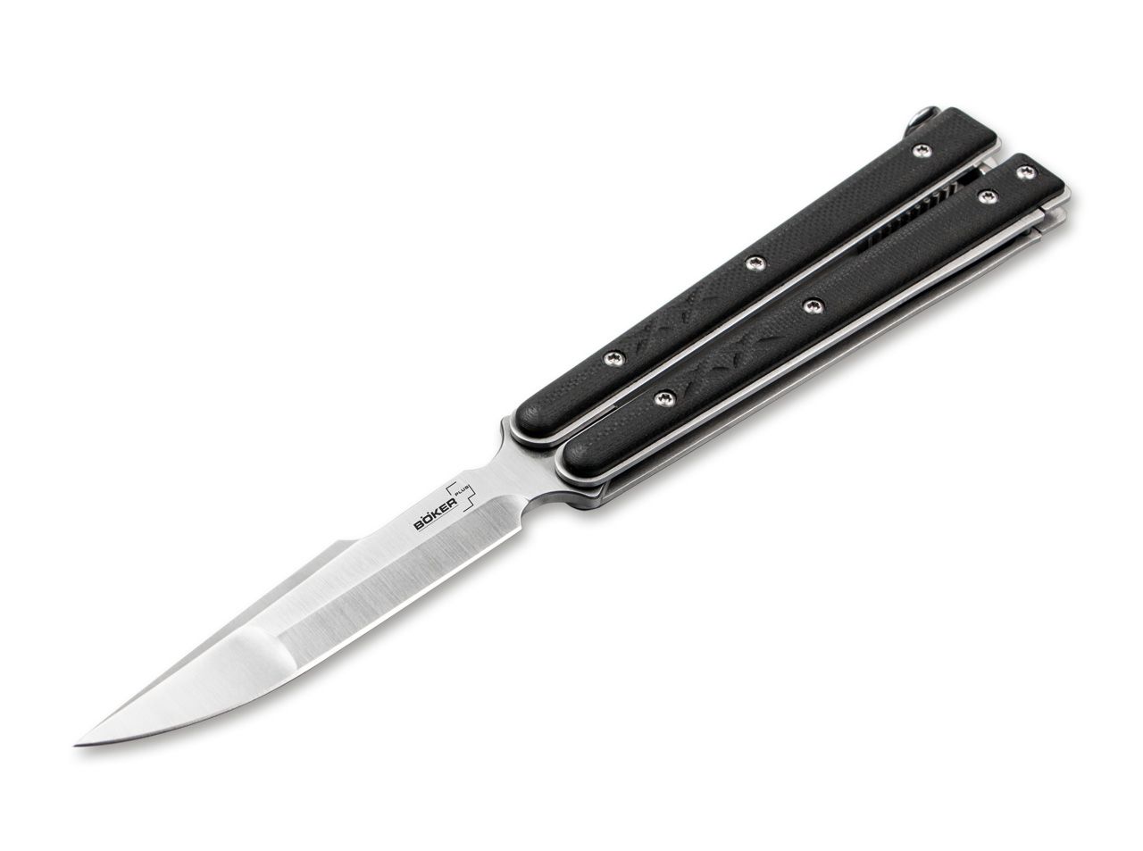 Motylki (balisongi) wraz z nożami OTF są (niesłusznie) uważane za noże o "bandyckim" charakterze. W rzeczywistości są to jedne z najbardziej bezpiecznych noży składanych na rynku. Wysokiej jakości motylek po rozłożeniu staje się praktycznie monolitem gwarantując pełne bezpieczeństwo pracy. W rękach doświadczonego użytkownika staje się on również nie tylko mocnym i niezawodnym narzędziem, ale również wspaniałą zabawką, którą można wykonywać skomplikowane ewolucje (Uwaga! Początkującym polecamy zaklejenie krawędzi tnącej taśmą dla bezpieczeństwa palców). Nowa wersja motylka Boker Plus to klasyczna dwuramienna konstrukcja z rękojeścią wykonaną ze stali nierdzewnej obleczoną w tworzywo G10. Nowa klinga o "taktycznym" wyglądzie jest umocowana na regulowanych śrubami osiach, a całość spina wygodna w obsłudze blokada (tzw. latch). Klinga o smukłym kształcie posiada wysoki szlif i jest wykonana ze stali 440C. Na jednym z ramion umieszczono klips, który poszerza spektrum zastosowań noża.