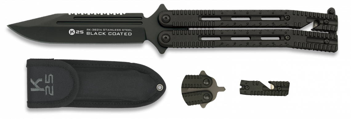 Głownia ze stali nierdzewnej z tytanową powłoką, długość całkowita 250 mm, długość klingi 114 mm, grubość klingi 3.0 mm, waga 150 g, rękojeść aluminium, blokada T-bar, wyposażony w zbijak do szyb i ostrze do cięcia pasów. W zestawie nylonowe etui.