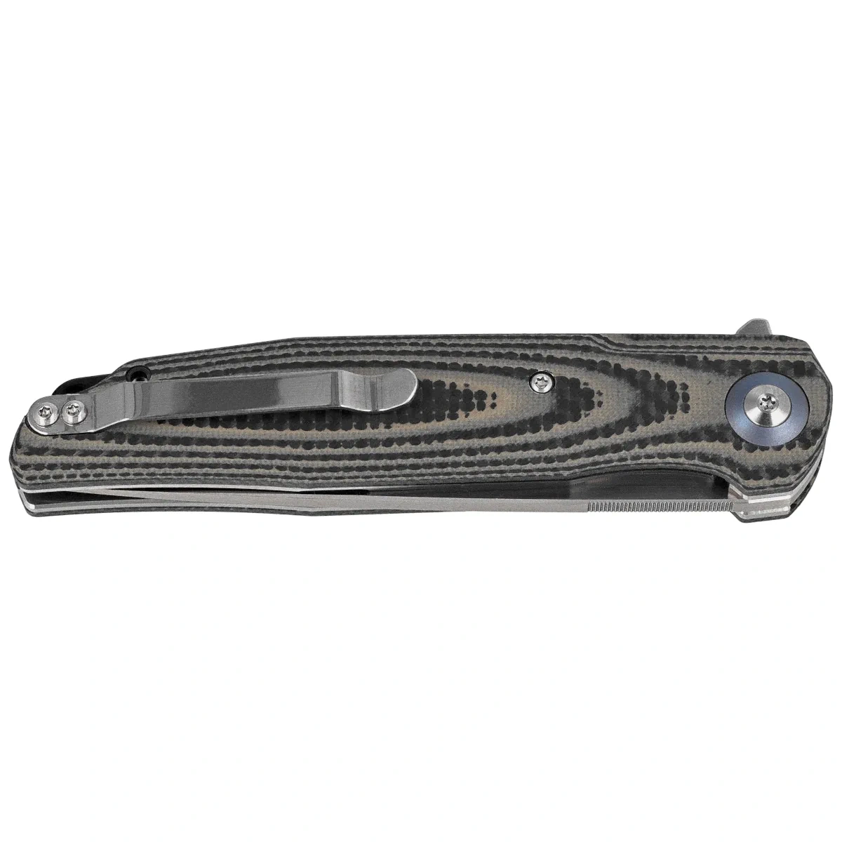Głownia - typu drop point, z eleganckim wykończeniem Satin. Lekki brzusiec wydłuża długość krawędzi tnącej w stosunku do długości klingi zbiegając się w kierunku ostrego jak igła czubka noża. Grubość klingi zapewnia wysoką wytrzymałość podczas gdy wysoki, płaski szlif daje doskonałą geometrię krawędzi tnącej oraz ekstremalną wydajność cięcia. Łożyska kulkowe wspomagają otwarcie ostrza za pomocą szybkiej płetwy flippera (index-finger flipper) po otwarciu pełniącej funkcję jelca. Fragment grzbietu klingi pokryto upper jimping, karbowanym oparciem pod kciuk ułatwiającym kontrolę nad nożem. Całość blokowana jest sprawdzoną i popularną blokadą liner lock.