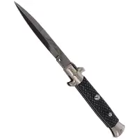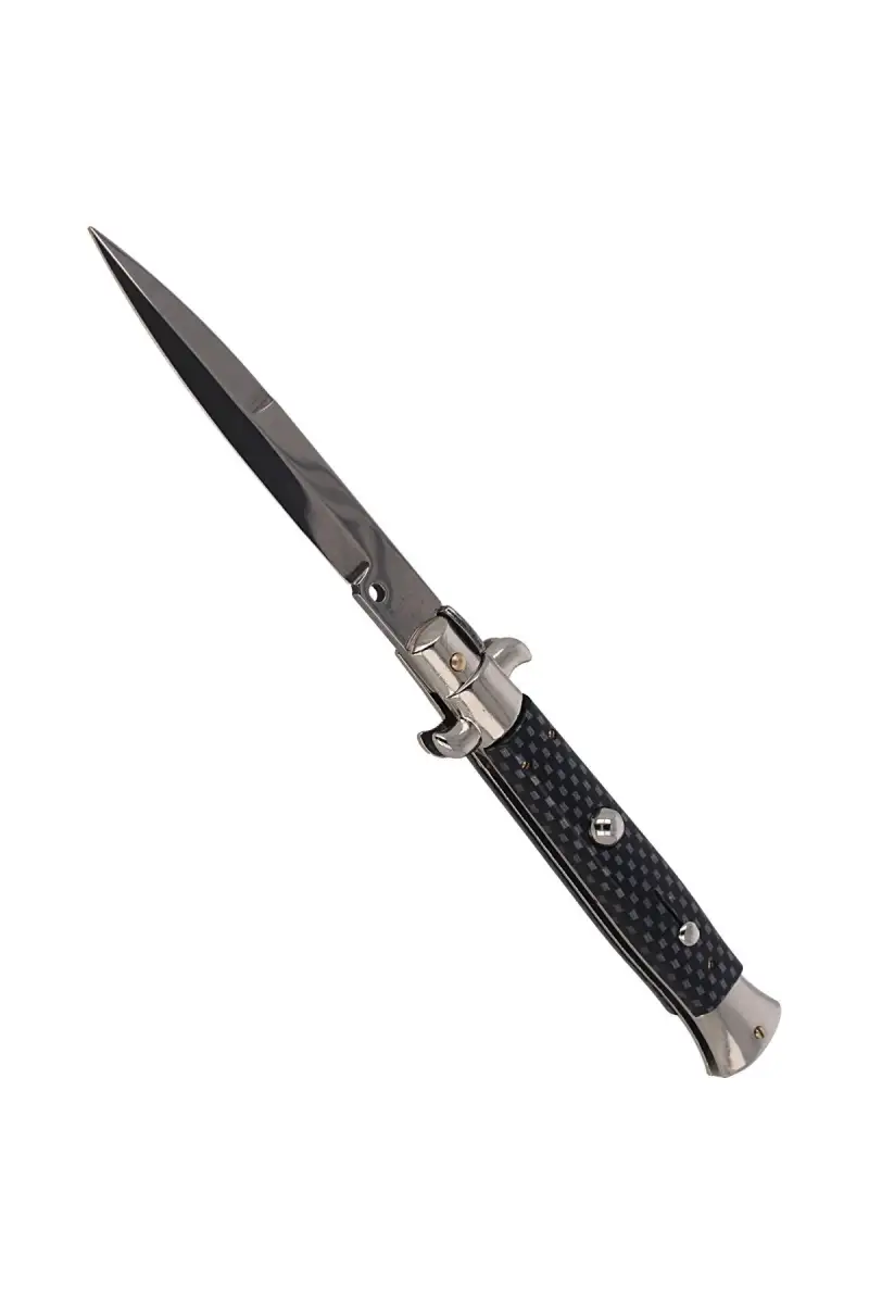 Switch Italian Stiletto Carbon Fiber Bayonet 23 cm, tradycyjny włoski nóż sprężynowy z rękojeścią z włókna węglowego. Otwarcie klingi musi odbyć w ciągu kilku setnych sekundy (cecha noży Stiletto). Całkowicie ręcznie wykonane, zgodnie z zasadami włoskiego rzemiosła, noże z legendarnej manufaktury Frank Beltrame stały się sławne na całym świecie dzięki swej skrajnej lekkości i wytrzymałości. Dzięki swoim właściwościom, włoski sztylet jest odpowiedni do zastosowania w każdym środowisku. Solidna, wytrzymała konstrukcja oraz mocna otwierająca głownię sprężyna, to cechy wyróżniające klasyczne noże sprężynowe Frank Beltrame.