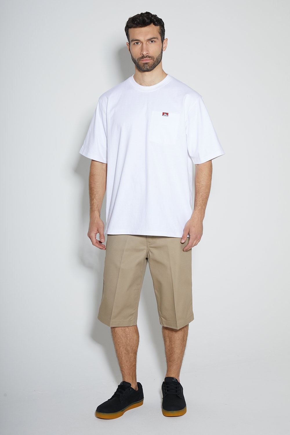 Ulepsz swoją letnią garderobę dzięki oryginalnym spodenkom Ben's Shorts, które są idealnym wyborem na cieplejsze miesiące. Wykonane z tej samej wysokiej jakości tkaniny o skośnym splocie z domieszką poliestrowej bawełny, co nasze kultowe spodnie Original Ben's Pants, te szorty oferują wyjątkową wygodę i trwałość. Dzięki regularnemu krojowi i wygodnemu, wewnętrznemu pasowi, są doskonałe dla każdej ciężko pracującej osoby, która chce zachować chłód i komfort w letnie dni. Niezależnie od tego, czy spędzasz czas na świeżym powietrzu, czy relaksujesz się w domu, Ben's Shorts zapewnią Ci styl i wygodę na każdą okazję. Najważniejsze funkcje i elementy produktu: • Materiał: Cotton Plenty Tough® - 50% bawełna / 50% poliester o gramaturze 297g/m 2 • Krój spodni: Regular fit • Dwie ukośne kieszenie z przodu oraz dwie wpuszczane kieszenie z tyłu • Guziki z logo marki Ben Davis Materiały i technologie: Cotton Plenty Tough® to zaawansowana technologia stosowana w produkcji tkanin bawełnianych. Dzięki niej bawełna staje się bardziej wytrzymała na ścieranie oraz odporna na zagniecenia. Technologia ta oprócz zwiększonej wytrzymałości zachowuje przy tym komfort oraz oddychalność.