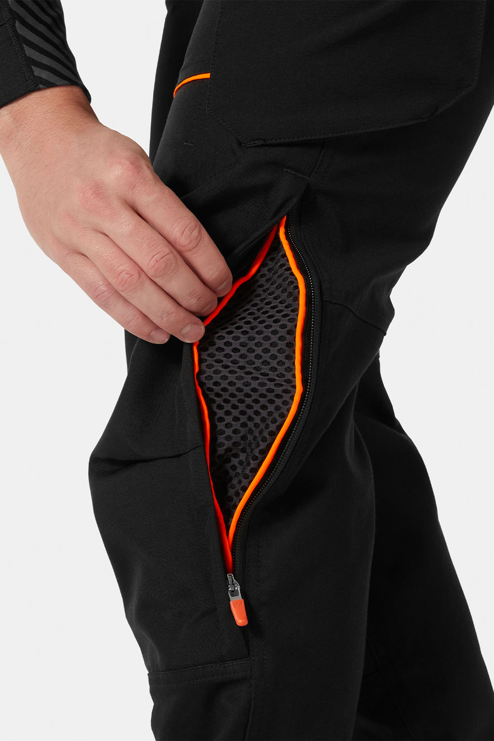 Spodnie Chelsea Evolution Connect™ łączą styl, wygodę i funkcjonalność. Wykonane z lekkiego, rozciągliwego w czterech kierunkach materiału, z przegubowymi kolanami i klinem w kroku, zapewniają optymalną mobilność w każdym miejscu pracy. Dzięki kompatybilności z systemem Connect™ można dostosować kieszenie do indywidualnych potrzeb. Wyprofilowany pas wewnętrzny, wzmocnienia z Cordury® oraz otwory wentylacyjne BRZ w bocznych szwach gwarantują komfort przez cały dzień. Metalowe guziki pokryte tworzywem sztucznym i szeroka środkowa szlufka z tyłu zapewniają dodatkową stabilność. Spodnie oferują dodatkowe regulacje dla Twojego komfortu. Można je wydłużyć o 5 centymetrów, a nakolanniki można regulować, aby uzyskać optymalną mobilność. Najważniejsze funkcje i elementy produktu: • Materiał główny: 94% poliamid, 6% elastan o gramaturze 244g/m 2 • Materiał dodatkowy: 68% bawełna, 32% poliester, o gramaturze 235g/m 2 • Wzmocnienia: 100% poliamid o gramaturze 210 g/m2 • Kompatybilne z systemem HH Connect™ • Lekka, elastyczna w czterech kierunkach tkanina • Klin w kroku zwiększający swobodę ruchów • Zewnętrzna kieszeń po lewej stronie, z suwakiem YKK® • Otwory wentylacyjne BRZ umieszczone w bocznych szwach • Solidne worki kieszeniowe z nylonowym wnętrzem i funkcjonalnymi paskami • Szeroka środkowa, tylna szlufka na pasek zwiększająca stabilność • Metalowe guziki • Wzmacniana kieszeń udowa • Pętla do zawieszenie identyfikatora • Kieszeń na przyrządy miernicze • Wzmocnienia na kolanach tkaniną Cordura® • Anatomiczna, profilowana konstrukcja nogawek w kolanach • Kieszeń na nakolanniki z możliwością regulowania ich wysokości • Możliwość wydłużenia nogawek o 5 cm • Elementy odblaskowe * zdjęcie drugie to tylko zdjęcie poglądowe przedstawiające możliwość przypięcia kieszeni Connect™ do spodni. Kieszenie sprzedawane są odzielnie. Materiały i technologie: 4-kierunkowy strecz to wyjątkowo elastyczny materiał znajdujący się w miejscach największych naprężeń Ułatwia swobodne poruszanie się oraz zapobiega rozdarciu materiału spowodowanego nadmiernym jego naprężeniem.